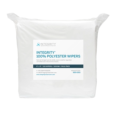 Vacuum cleanroom packed and double bagged, the cleanroom polyester wipes deliver excellent absorbency and wiping efficiency. They are solvent safe, making them suitable for a wide range of cleaning tasks in controlled environments, and are approved for use in ISO Class 4 cleanrooms.