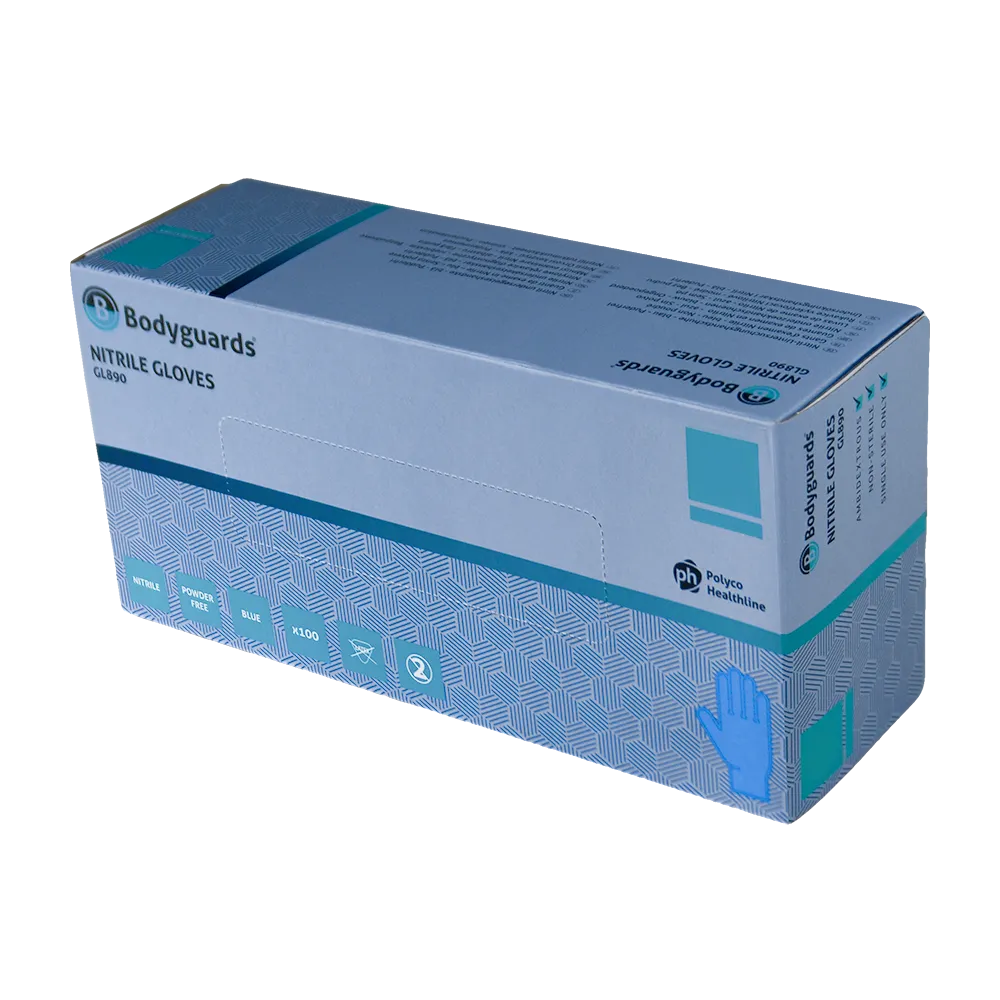 These disposable POLYCO HEALTHLINE Bodyguards blue nitrile gloves are powder-free and naturally antistatic, making them ideal for use in electronic assembly, manufacturing, and other sensitive environments. Designed as a safe alternative for those with latex allergies, they provide a reliable physical barrier without the risk of allergic reactions.