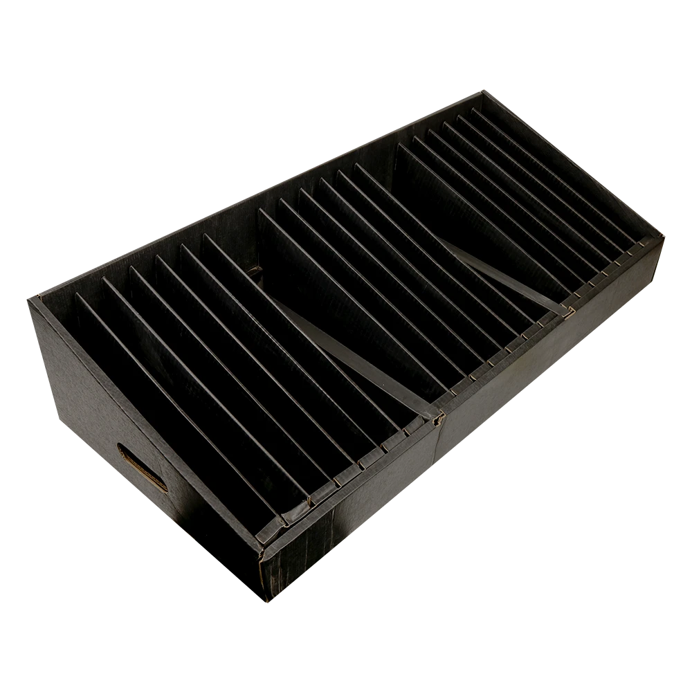 The Corstat reel storage system is a flexible bench mount storage solution for 7in and 15in component reels. Available in single, double, and triple module units, the division spacing can be 18mm or 32mm to suit your specific application. Manufactured from Corstat coated corrugated fibreboard as standard, the system is also available in conductive fluted polypropylene (Corriplast) for heavy-use environments. Each unit is supplied fully assembled and configured to meet your exact requirements for maximum convenience.