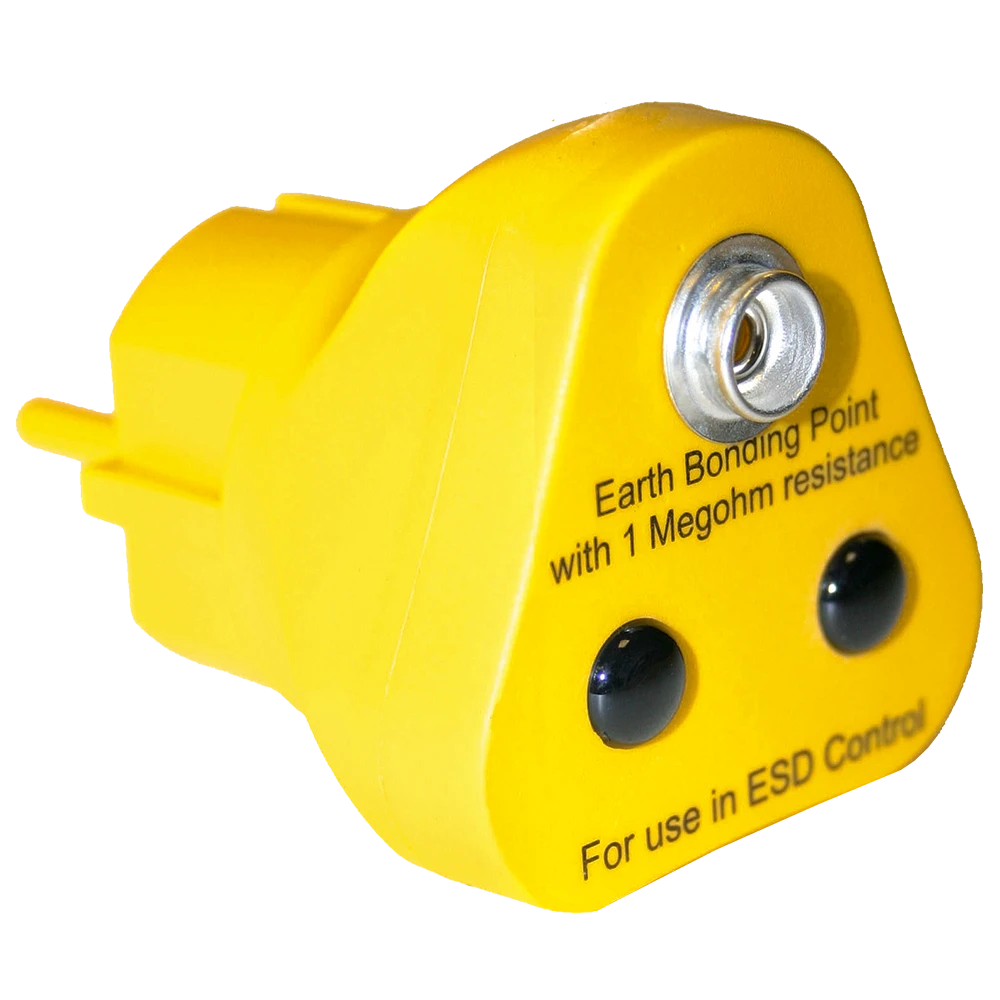 The ESD earth bonding plug comes in two variants, designed to fit either UK or European mains plug outlets. The sturdy build quality makes it suitable for constant use within a static controlled area, while the yellow design ensures easy identification so grounding cords can be quickly connected to the correct point.