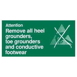 • “Attention: Remove all heel grounders, toe grounders and conductive footwear.”