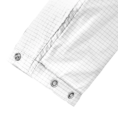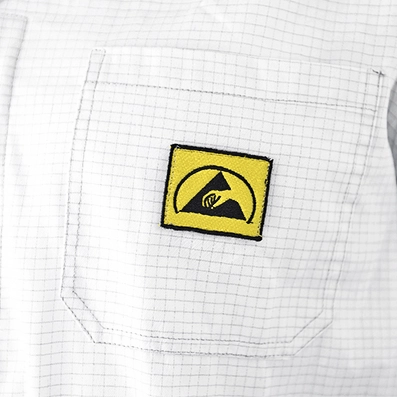 Antistatic Grid, Chest Pocket, Integrated ESD Symbol, Side Pockets, Snap Fasteners, Studded Cuffs