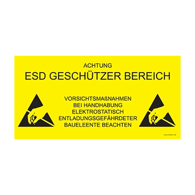 “ATTENTION. ESD PROTECTED AREA. OBSERVE PRECAUTIONS FOR HANDLING ELECTROSTATIC DISCHARGE SENSITIVE DEVICES.”