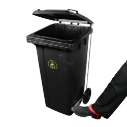 For a complete static-controlled waste solution, use our most popular size 120L wheelie bin together with our 30in x 39in x 47in antistatic gusset bags.