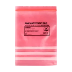 Our pink grip seal antistatic bags (ANT003PAB) provide safe, convenient packaging for non-ESD sensitive items within static-controlled areas. These grip seal poly bags are 75 microns (3 mil) thick and made from LDPE (low-density polyethylene) with antistatic additives to prevent static build-up. The grip-seal closure secures items inside immediately, making these bags ideal for repeated use in everyday handling and storage. They are fully RoHS and REACH compliant and amine-free, meaning the bags will not release chemicals that could damage sensitive electronic components.