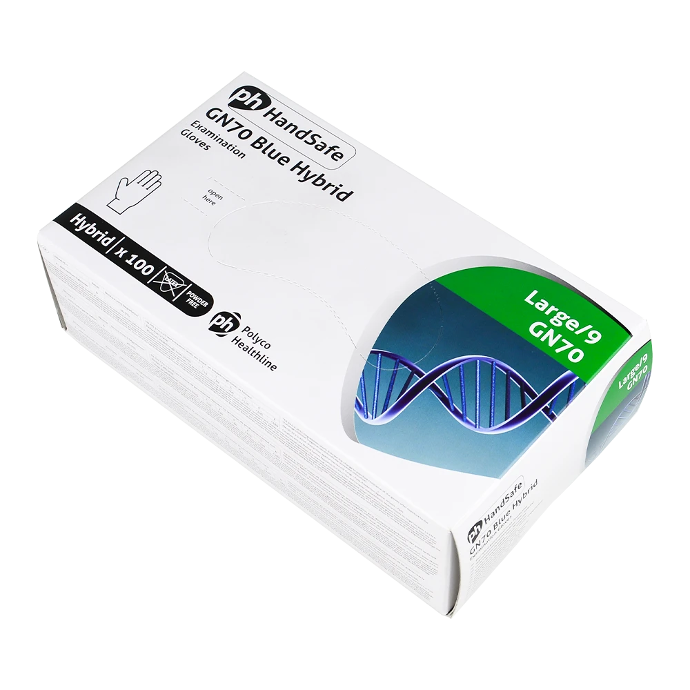 These sterile blue vinyl disposable gloves from Polyco Healthline are powder-free and latex-free, making them suitable for sensitive environments. They are available in size large and supplied in boxes of 100 gloves.