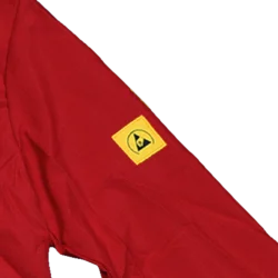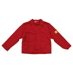 This red, 1/3-length ESD short lab jacket offers reliable protection against electrostatic discharge while maintaining a smart, professional look. Made from a lightweight, static-dissipative fabric, it ensures comfort and safety in EPA environments. Features include two side pockets, and one breast pocket. Composition: 74% Polyester, 24% Cotton, 2% Conductive Fibre.